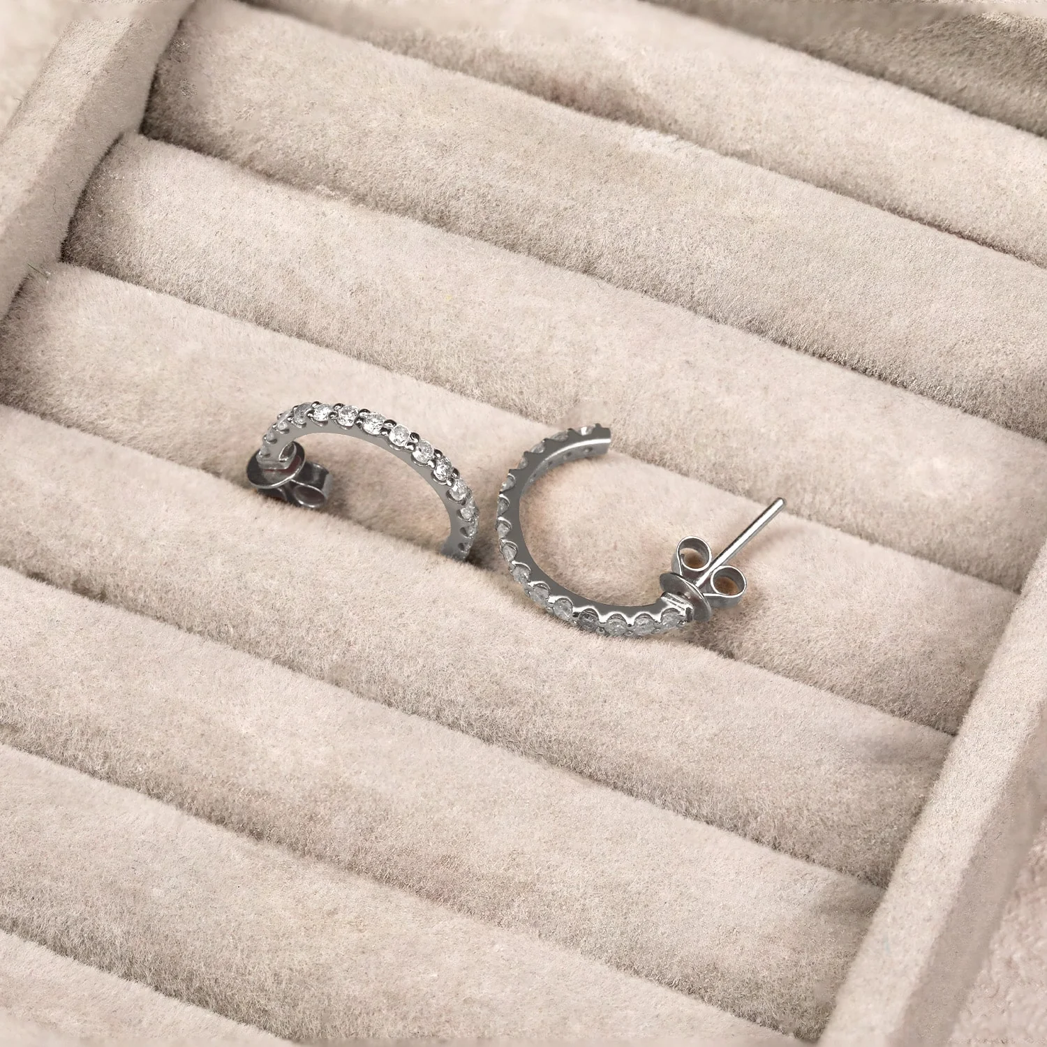 Half Hoop 20 Diamond Earrings (Silver)