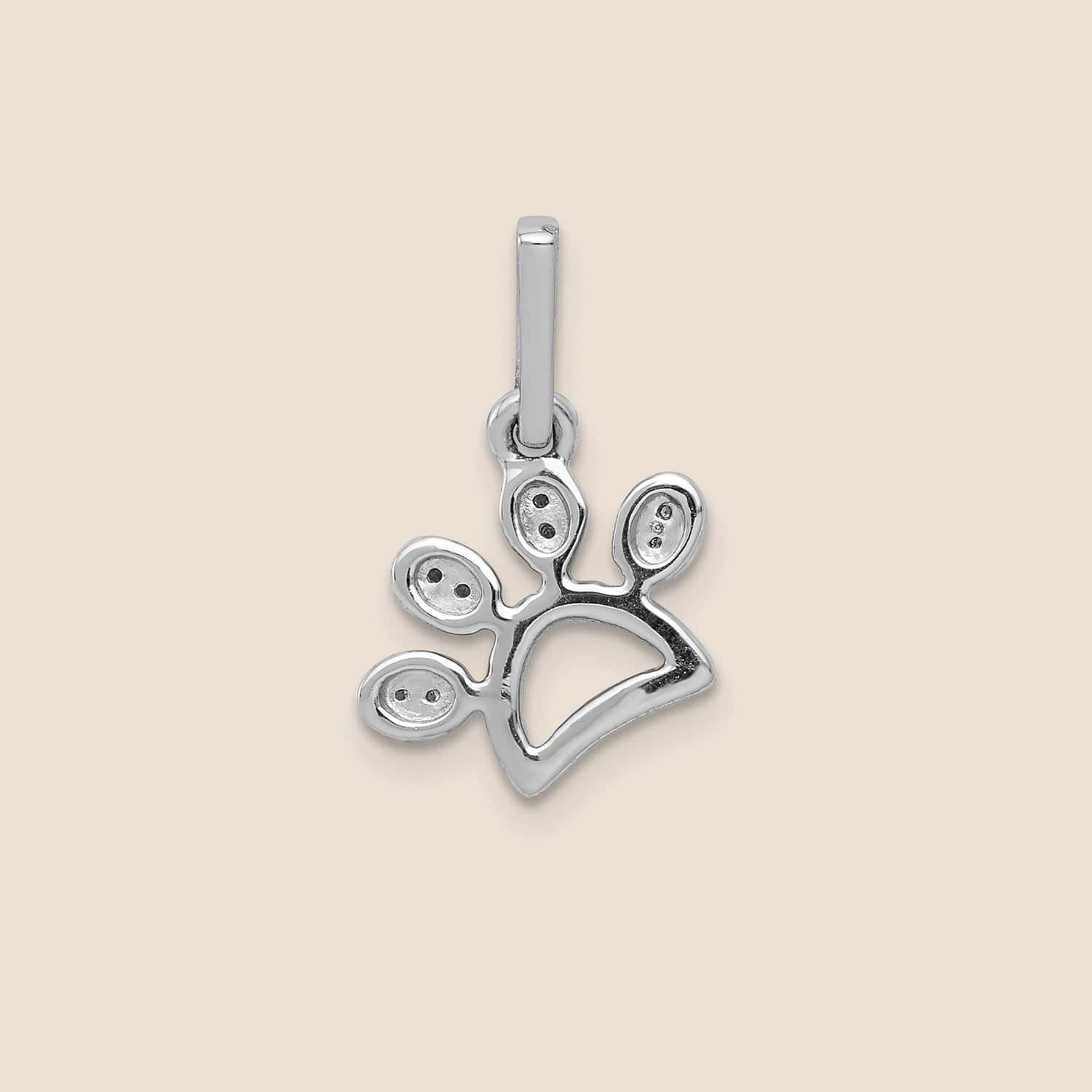 14K White Gold Paw Print Pendant 20 Diamond