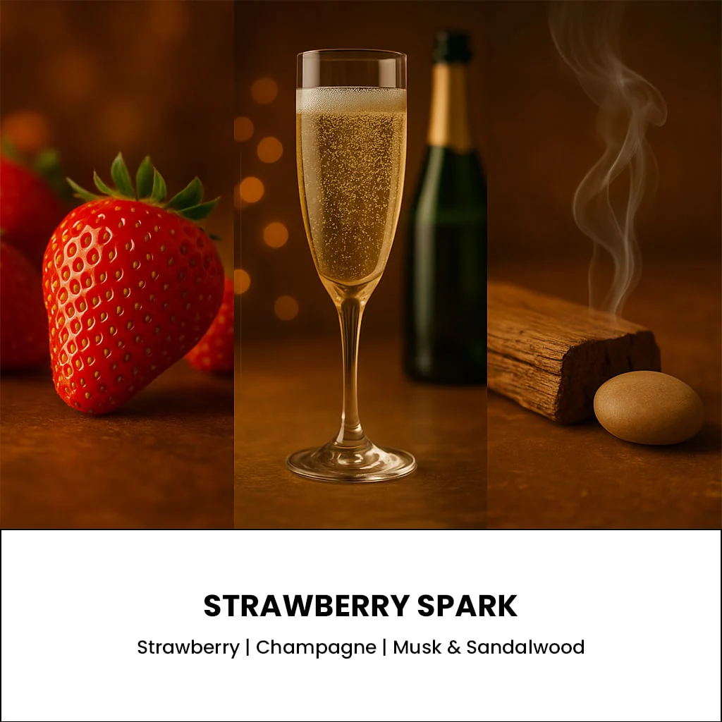 Scent Notes: Fresh strawberries and fizzy champagne rounded out with soothing musk and sandalwood 🍓